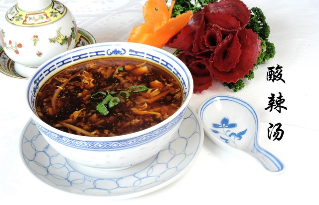 rassige Suppe nach Sze Chuan Style. Nach chinesischer Auffassung hilft diese Suppe bei Kopfschmerzen und nach einem Kater.